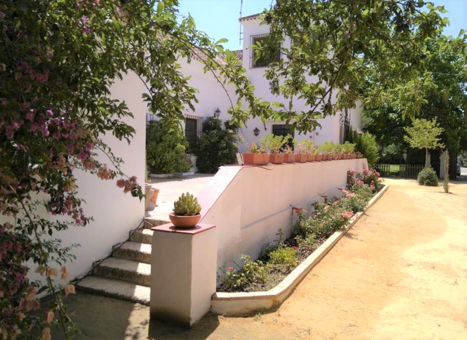 Características UN TROCITO DE HISTORIA .La finca se encuentra ubicada en el Poblado de Colina, Término Municipal de La Puebla del Río (Sevilla), la formación del poblado tiene sus orígenes con la transformación agraria de esta área iniciada en 1926, cuando la compañía Islas del Guadalquivir, SA (de capital inglés y suizo) compra las tierras al marqués de Casa Rica, (las Islas y parte de las marismas de la margen derecha) y pone en marcha las primeras plantaciones de arroz en 1929. Para acoger a los trabajadores de estos cultivos se construyen los primeros poblados con un carácter estable en estas tierras: Alfonso XIII, Rincón de los Lirios, Colinas, El Puntal, Veta de la Palma... La hacienda (ahora llamada S. Pablo) fue construida por los ingleses para su uso, los materiales utilizados son los grandes bloques de hormigón que en el poblado de colinas se fabricaban, originalmente contaba con una pérgola de madera en la terraza porche que en la actualidad ya no está, pero todo lo demás hasta la cerrajería son las originales.