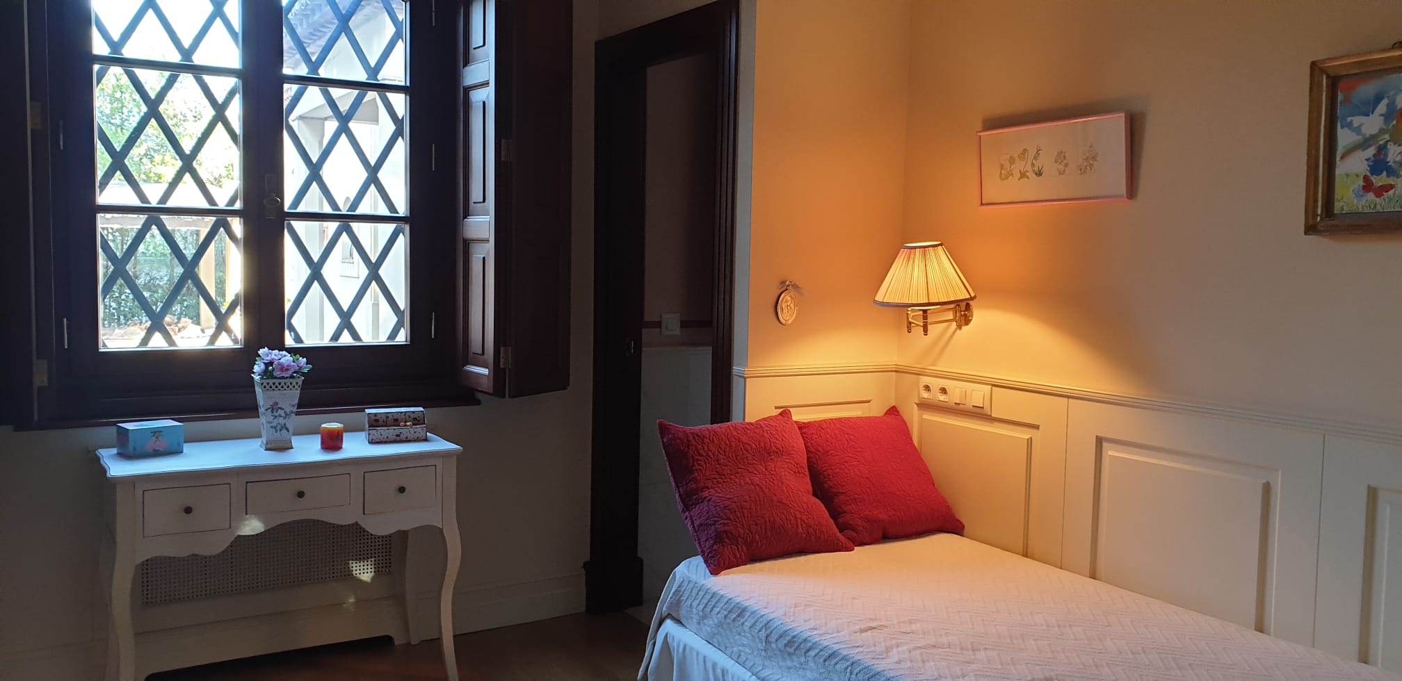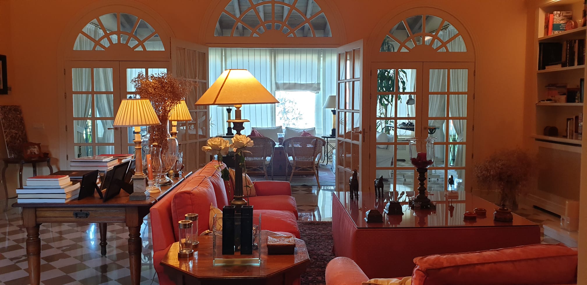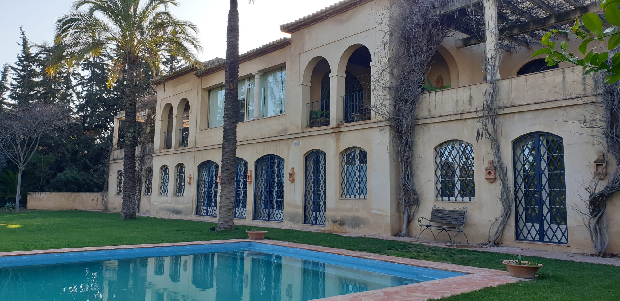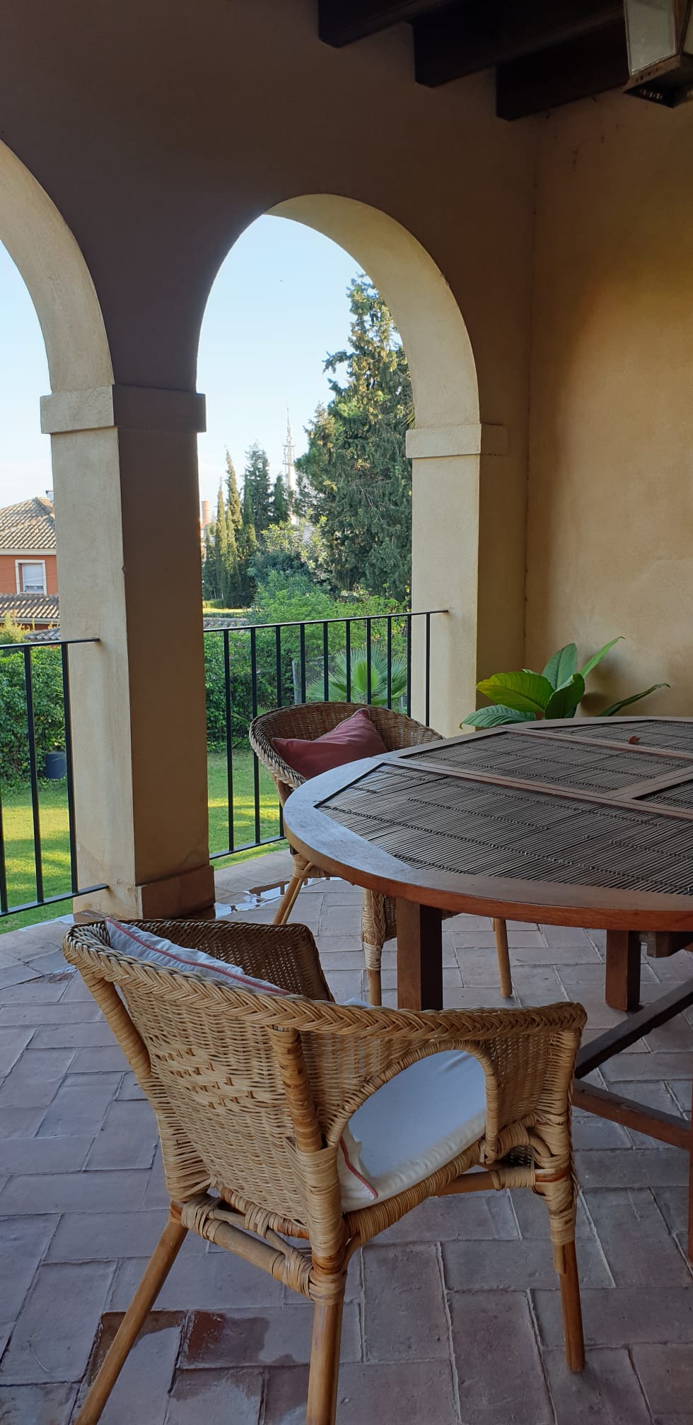 Esta acogedora y gran casa en el Aljarafe sevillano, situada en una urbanización privada muy cercana a la ciudad muy tranquila, seguridad. La gran arboleda que la rodea y donde se respira suntuosidad, calma y relax.