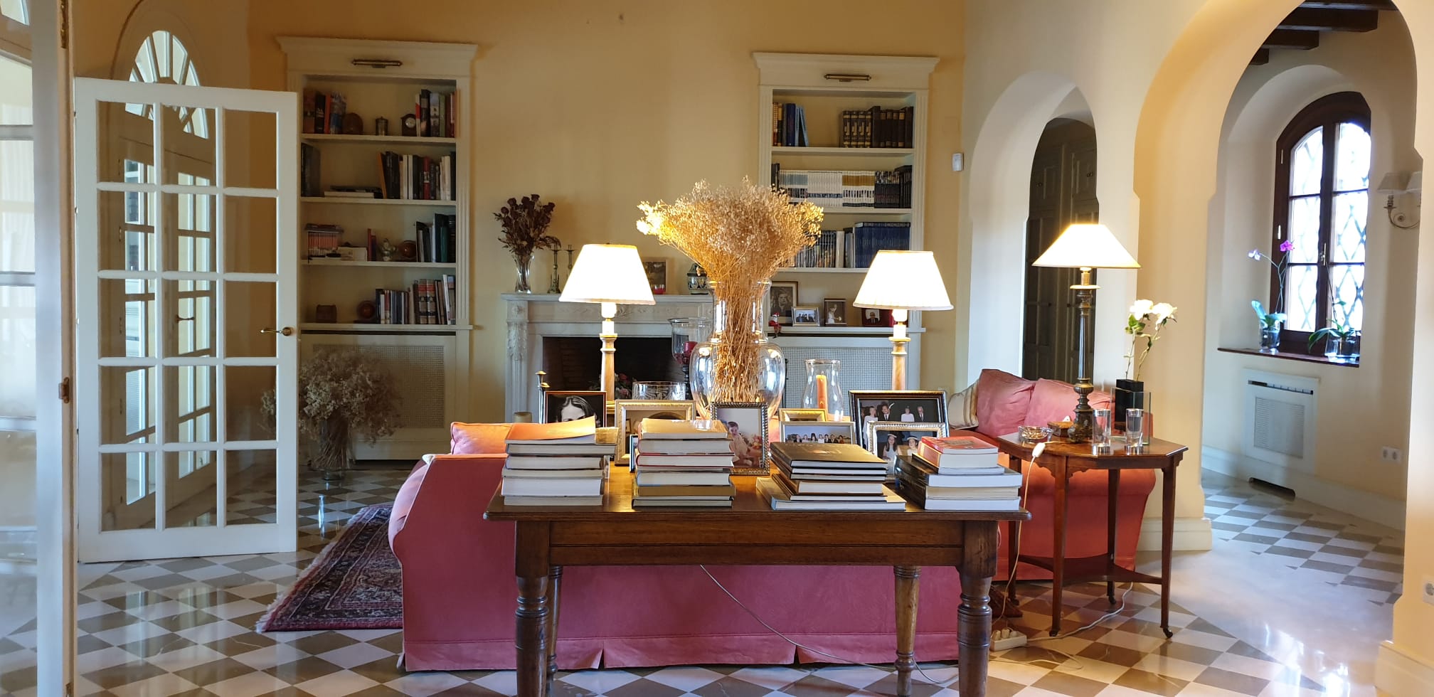 Su entrada con estilo rústico con suelo empedrado, una bonita puerta de entrada, con un pequeño porche flaqueado por dos columnas. En el lateral de la casa se encuentra el parking cubierto para tres coches, protegida por gran vegetación, llama la atención las buganvillas… hacen que la entrada ya preceda lo que espera al abrir la puerta de la casa y su gran sensibilidad. Nos encontramos con un gran hall que da paso a donde cocina, comedor y salón se conectan visualmente con el magnífico porche que dan al jardín lleno de arboleda y zona de piscina. El espacioso salón con vistas al jardín. También dispone de una dos chimeneas, tanto en el salón como en la zona de estar. El interiorismo está protagonizado mezcla de colores neutros que transmiten naturalidad, elegancia y confort con materiales nobles como la madera y suelos tanto mármol, como barro.